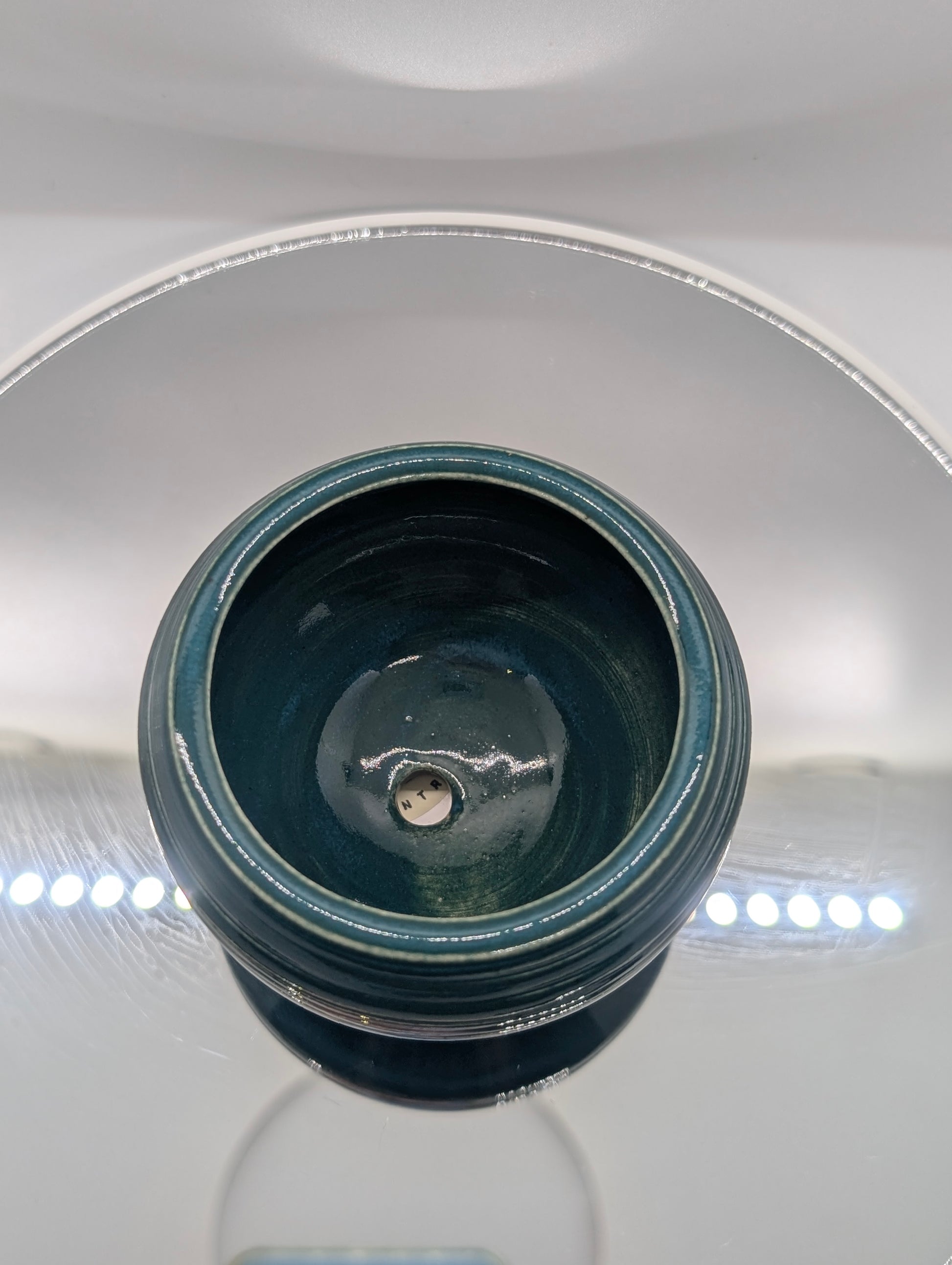 This cutie is perfect for succulents, new sprouts or small plants. Drainage hole and carvings to catch the gorgeous glaze!
